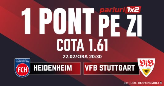 - 09:18Un Pont pe Zi, 22 februarie: Profitul vine din Bundesliga! Astăzi Heidenheim - VFB Stuttgart