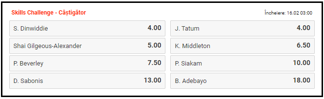 Jayson Tatum a fost castigatorul concursului de indemanare din 2019. In finala, acesta a trecut de conducatorul de joc de la Atlanta Hawks, Trae Young. Propunerea noastra pentru editia din 2020 este Spencer Dinwiddie, conducatorul ce joc de la Brooklyn Nets, care se afla la cel mai bun sezon al carierei. Spencer va incerca sa se foloseasca de increderea acumulata pana in prezent si sa isi treaca in cont titlul Taco Bell Skills Challenge.