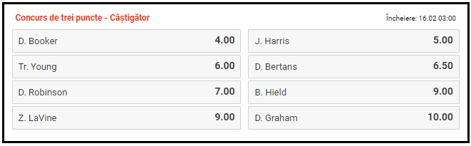 De multe ori, aceasta competitie ofera un castigator pe care nimeni nu l-ar fi anticipat. Acesta a fost cazul in 2019 si ne asteptam sa se intample si in 2020. Duncan Robinson este alegerea noastra. Jucatorul celor de la Miami Heat este al 4-lea in clasamentul jucatorilor cu cele mai multe reusite de 3 puncte din acest sezon (191), dupa James Harden, Damian Lillard si Buddy Hield.