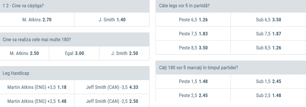 Sambata, incepand cu ora 22:30, se va disputa partida Martin Atkins – Jeff Smith, din cadrul turneului de darts PDC Home Tour.