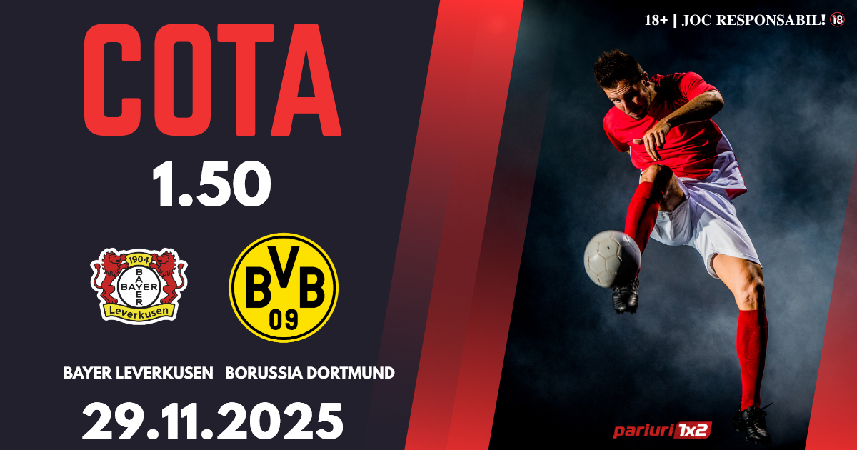 Bayer Leverkusen – Borussia Dortmund: Bundesliga a ajuns la etapa cu numărul 12, iar iar derby-ul rundei are loc pe Bay Arena. Cotele la ponturi pariuri ne indică faptul că vom avea un meci extrem de echilibrat, iar noi vă propunem un pronostic în cotă 1.50, bun pentru biletul zilei.