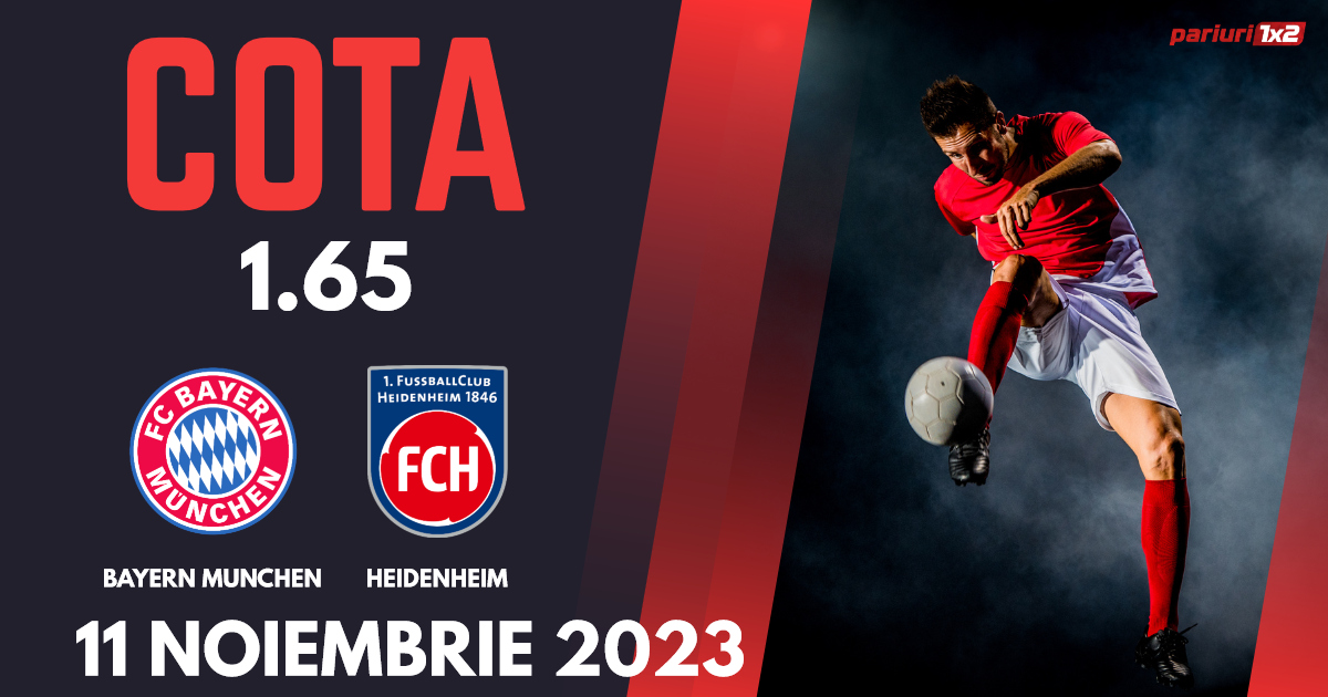 Pariuri sportive : Bayern Munchen – Heidenheim, se va disputa sâmbătă, 11 noiembrie, incepand cu ora 16:30, in cadrul etapei a 11 -a din Bundesliga. Partida se joaca pe Allianz Arena din Munchen.
