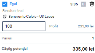 Bilet de pariuri in cota 3 V 21:30, Benevento – Lecce, Remiza la final, cota 3.35