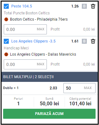 Startul playoff-ului aduce cu el si primul bilet din NBA pe acest sezon. Astazi ne dublam investitia cu partidele Celtics – 76ers si Clippers – Mavericks.