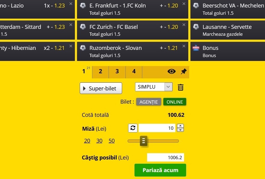 Bilet in BONUS DUBLU cota 100! Este weekend, oferta este una atractiva si incercam sa dam lovitura!