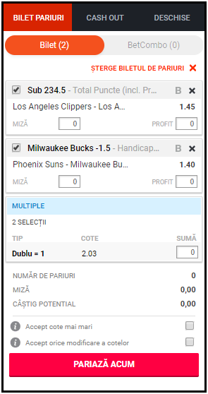 Sub 234,5 puncte (inclusiv prelungiri) – Cota 1.45 la Betano
