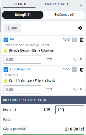 Vineri 19:30 Majchrzak – Krajinovic: 2, cota 1.50
