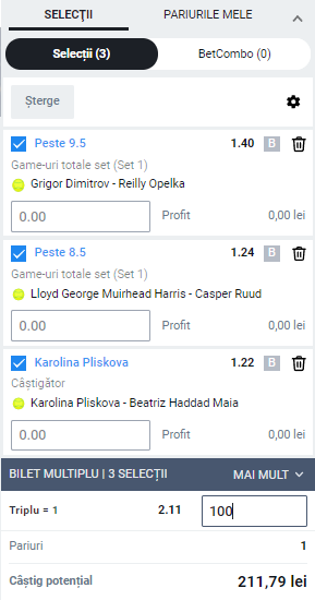 Luni 23:00 Ka. Pliskova – Haddad Maia: 1, cota 1.22