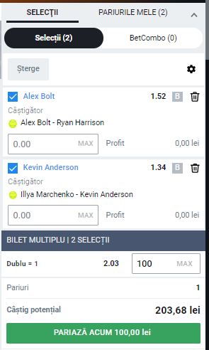 Luni 18:00. Bolt – Harrison, 1 , Cota 1.52