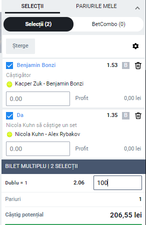 Biletul zilei pe tenis