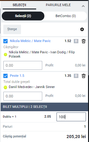 Joi 22:00 Medvedev – Sinner, peste 1.5 duble greseli – cota 1.35