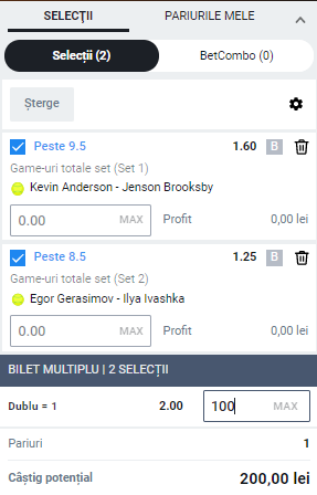 Luni 22:30 Anderson – Brooksby , peste 9.5 game-uri in primul set , cota 1.60
