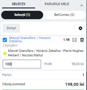 S 19:30 Granollers / Zeballos – Herbert / Mahut, 1 – cota 1.98