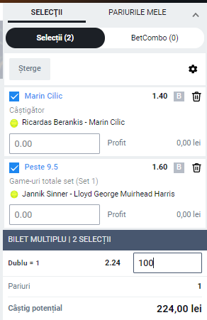 Sam 17:00 Berankis – Cilic: 2, cota 1.40