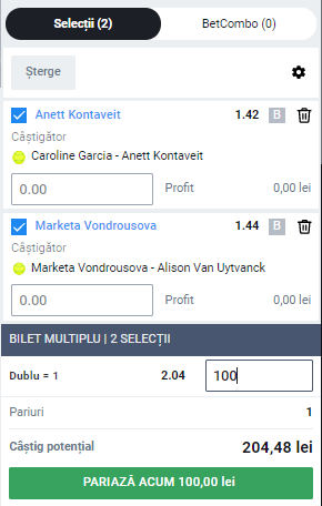 Miercuri 19:00 Vondrousova – Van Uytvanck: 1, cota 1.44