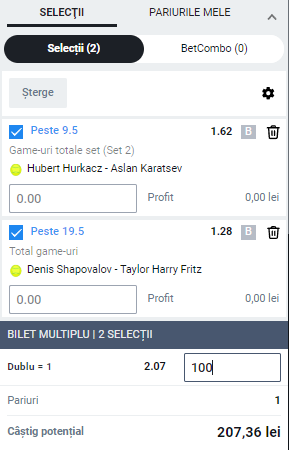 Joi 23:00 Hurkacz – Karatsev: peste 9.5 game-uri in primul set, cota 1.62