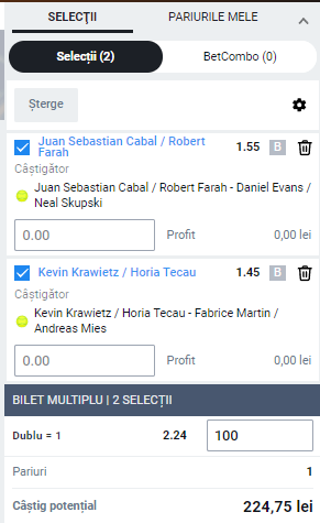 Joi 17:30 Cabal / Farah – Evans / Skupski: 1 – cota 1.55