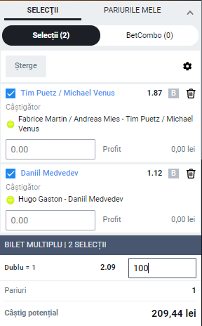 Vin 20:30 Gaston – Medvedev: 2 – cota 1.12