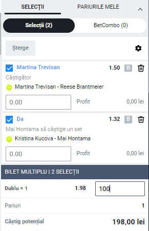 Marti 21:00 Trevisan – Brantmeier: 1, cota 1.50