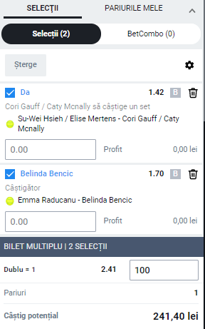 Mie 23:00 Hsieh / Mertens – Gauff / McNally: Gauff / McNally castiga minim un set, cota 1.42