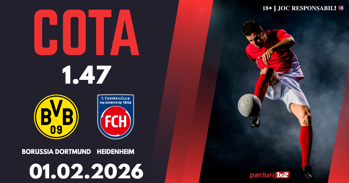 Gruparea gazdă vine după un eșec în fața Interului lui Chivu, dar în Bundesliga lucrurile merg foarte bine. Borussia Dortmund se află pe locul doi cu 42 de puncte și va lupta pentru păstrarea acestei poziții până la finalul sezonului. Gruparea de pe Signal Iduna Park are doar o înfrângere în campionatul intern, acel 1-2 cu Bayern Munchen. De partea cealaltă, Heidenheim este modestă, fiind pe ultimul loc. Este greu de crezut că vor fi surprize în această confruntare, iar pronosticul nostru este 1 și 2-6 goluri.