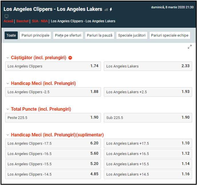 Victorie Los Angeles Clippers (inclusiv prelungiri) – Cota 1.74 la Betano
