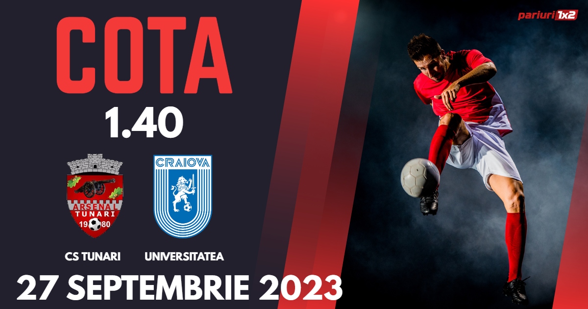 Ponturi: CS Tunari – Universitatea Craiova, va avea loc miercuri, 27 septembrie, de la ora 16:15 pe stadionul „ Central Arsenal Tunari” din Tunari, partida urmând a conta pentru prima etapă Grupa D din Cupa României, ediția 2023-2024. Meciul va fi arbitrat de Cătălin Roman din Timișoara.