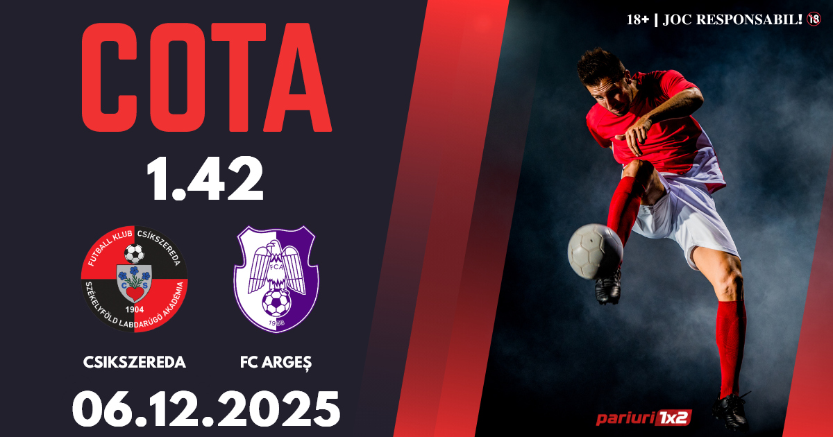 Csikszereda – FC Argeș: Superliga a ajuns la etapa cu numărul 19, iar gazdele luptă pentru menținerea în primul eșalon al fotbalului românesc. Cotele la ponturi pariuri ne indică faptul că vom avea parte de un meci cu argeșenii favoriți, iar noi vă propunem un pronostic în cotă 1.42, bun pentru biletul zilei.