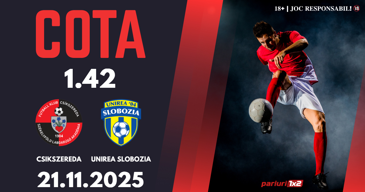 Csikszereda – Unirea Slobozia: Superliga a ajuns la etapa cu numărul 17, iar lupta pentru evitarea retrogradării este foarte dură. Cotele la ponturi pariuri ne indică faptul că vom avea parte de un meci în care gazdele sunt favorite , iar noi vă propunem un pronostic în cotă 1.42, bun pentru biletul zilei.