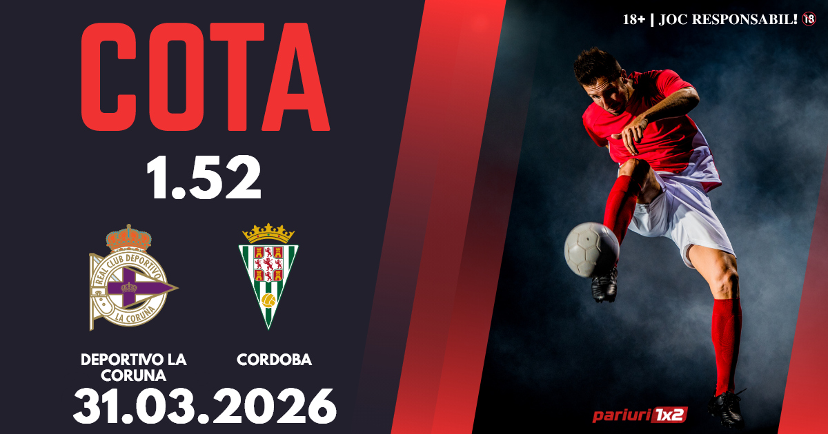 Deportivo La Coruna – Cordoba: La Liga 2, al doilea eșalon al fotbalului din Spania a ajuns la etapa cu numărul 33. În continuare vom analiza o partidă cu implicații în lupta pentru promovare. Cotele la ponturi pariuri ne indică faptul că vom avea parte de un meci în care gazdele sunt favorite, iar noi vă propunem un pronostic în cotă 1.52, bun pentru biletul zilei.