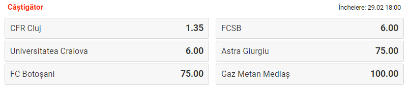 75.00 este cota FC Botoșani la câștigarea campionatului!