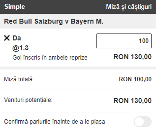 Salzburg si Bayern Munchen se intalnesc in mansa tur a optimilor de finala ale UEFA Champions League. Formatia gazda este primul club din Austria care accede in fazele eliminatorii ale UCL, in timp ce Bayern a depasit faza grupelor in precedentele 19 participari. Mizam pe o partida spectaculoasa deoarece Salzburg beneficiaza de o formatie ofensiva, care joaca dezinvolt, in timp ce bavarezii au unul dintre cele mai puternice atacuri din Europa. Mai mult, formatia vizitatoare are o medie de 4.2 goluri pe meci in actuala stagiune din UCL si a marcat de 13 ori in ultimele 4 partide oficiale.