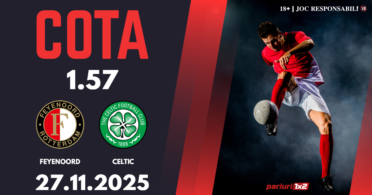 Feyenoord – Celtic: Europa League a ajuns la etapa cu numărul cinci.Cele două formații suferă în această competiție și riscă să piardă primăvara europeană. Ne așteptăm la o confruntare spectaculoasă, iar cotele la ponturi pariuri ne arată faptul că există o favorită în acest meci. Noi vă propunem un pronostic în cotă 1.57, bun pentru biletul zilei.