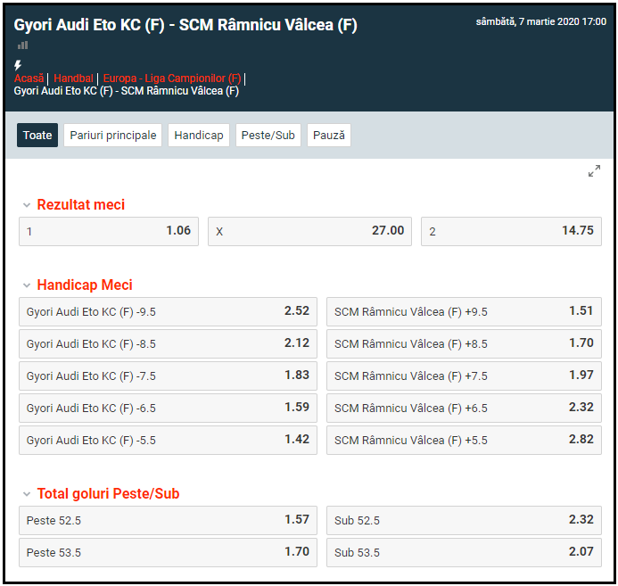 Gyor si SCM Ramnicu Valcea se intalnesc intr-o partida din cadrul grupelor principale ale Ligii Campionilor la handbal feminin. Confruntarea se va disputa sambata, de la ora 17:00.