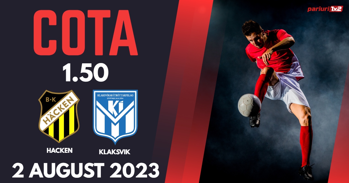 Ponturi: Hacken – Klaksvik, va avea loc miercuri, 2 august, pe „Bravida Arena” din Gothenburg, duelul contând pentru manșa secundă a celui de-al doilea tur preliminar din Champions League. Jocul se reia de la scorul de 0-0. Câștigătoarea va juca runda următoare cu învingătoarea „dublei” HJK – Molde.