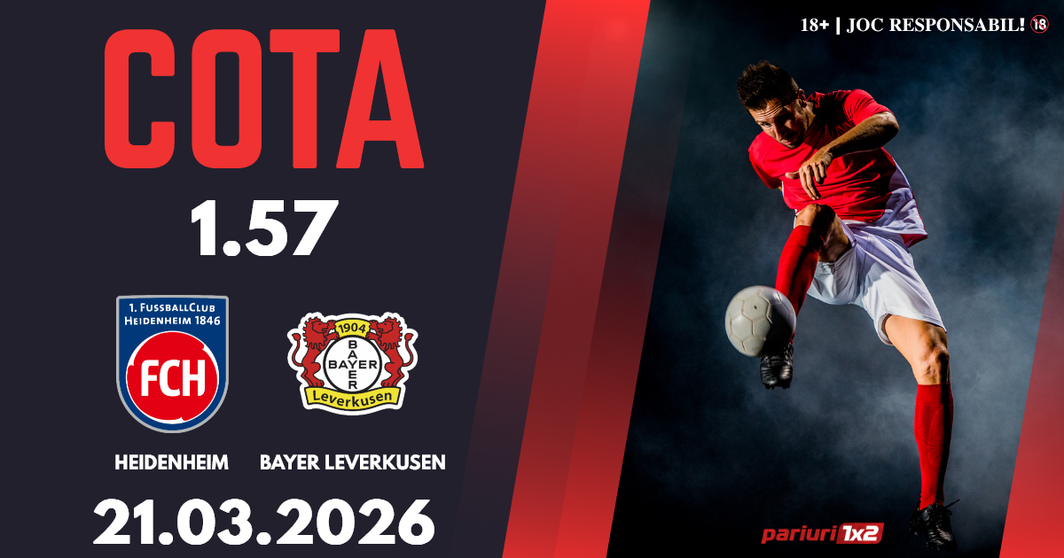 Heidenheim – Bayer Leverkusen: Bundesliga a ajuns la etapa cu numărul 28, iar oaspeții luptă pentru un loc în top patru. Cotele la ponturi pariuri ne indică faptul că vom avea parte de un meci în care bavarezii nu vor avea probleme, iar noi vă propunem un pronostic în cotă 1.44, bun pentru biletul zilei.