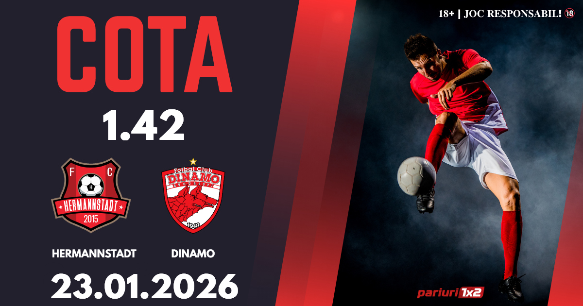 Hermannstadt – Dinamo: Superliga a ajuns la etapa cu numărul 23, iar oaspeții au intrat serios în lupta pentru titlu. Cotele la ponturi pariuri ne indică faptul că vom avea parte de un meci în care echipa vizitatoare este favorită, iar noi vă propunem un pronostic în cotă 1.42, bun pentru biletul zilei.