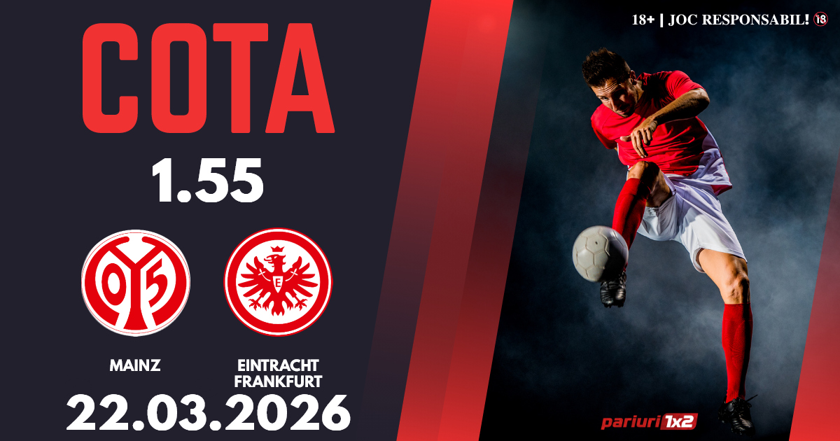 Mainz – Eintracht Frankfurt: Bundesliga a ajuns la etapa cu numărul 28, iar gazdele luptă pentru supraviețuirea în primul eșalon. Cotele la ponturi pariuri ne indică faptul că vom avea parte de un meci în care gruparea gazdă este favorită, iar noi vă propunem un pronostic în cotă 1.55, bun pentru biletul zilei.