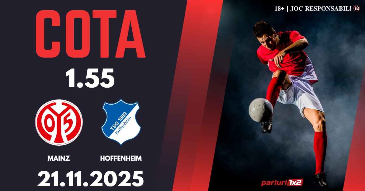 Mainz – Hoffenheim: Bundesliga a ajuns la etapa cu numărul 11, iar oaspeții vin după o serie foarte bună. Cotele la ponturi pariuri ne indică faptul că vom avea un meci echilibrat, iar noi vă propunem un pronostic în cotă 1.55, bun pentru biletul zilei.