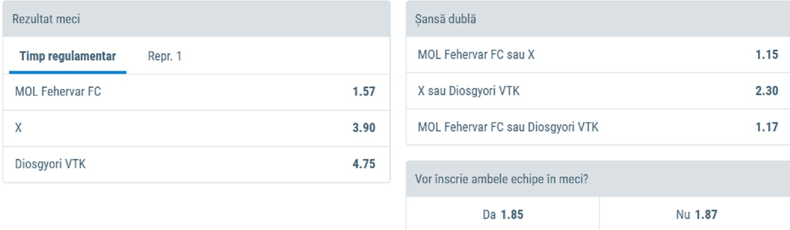 MOL Fehervar – DVTK: Cote de 1.45 si 2.00 pentru meciul zilei din Ungaria!
