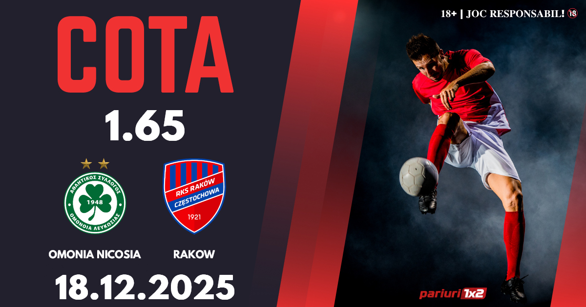 Omonia Nicosia – Rakow: Europa Conference League a ajuns la etapa cu numrul șase. Cele două formații se luptă pentru un loc în top 8, lucru ce le-ar asigura calificarea direct în optimile competiței. Ne așteptăm la o confruntare echilibrată, iar cotele la ponturi pariuri ne arată faptul că ciprioții sunt ușor favoriți în acest meci. Noi vă propunem un pronostic în cotă 1.65, bun pentru biletul zilei.