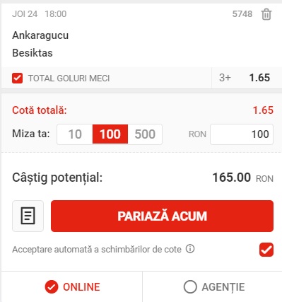 18:00: Ankaragucu – Besiktas, peste 2.5 goluri, cota 1.65 la Superbet;