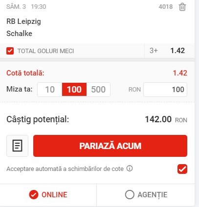 19:30: Leipzig – Schalke, peste 2.5 goluri, cota 1.42 la Superbet;