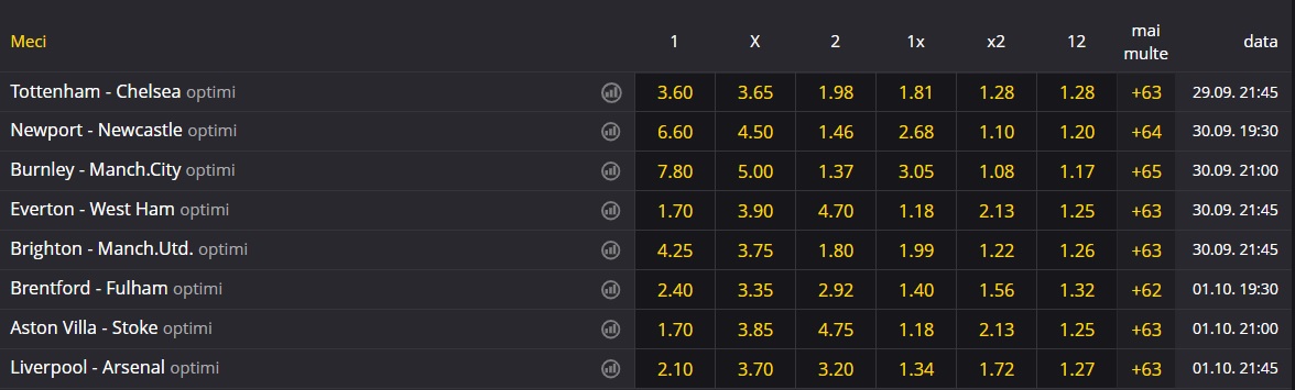 Newcastle are cel mai usor duel dintre echipele de prima liga: trupa lui Steve Bruce merge la Newport, o formatie care s-a „obisnuit” sa joace cu granzii Angliei in aceasta competitie. Cota de 1.46 a „cotofenelor” este extrem de interesanta! Altfel, Manchester City are o deplasare la Burnley, iar echipa lui Guardiola vine dupa o umilinta acasa, cu Leicester (2-5). De regula, „cetatenii” se „razbuna” pe primul adversar intalnit in cale, dupa astfel de scoruri. Avem cota 2.32 pentru cel putin patru goluri marcate in meciul de pe Turf Moor, in Cupa Ligii Angliei.