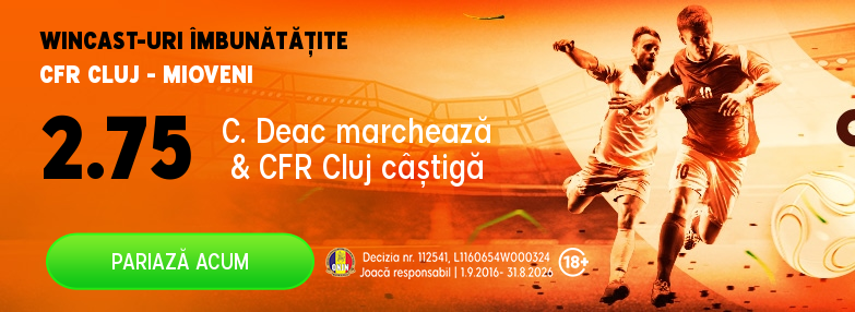 Pariuri fotbal: CFR Cluj – CS Mioveni, va avea loc duminică de la ora 19:30, partida urmând a conta pentru runda a 19-a a Ligii 1. În tur campioana s-a impus la limită pe terenul nou-promovatei, scor 1-0.