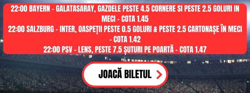 Pariurile de miercuri sunt aici. Alte 3 selecții din Liga Campionilor, după ce ieri s-au înverzit două din ponturile oferite din această competiție.