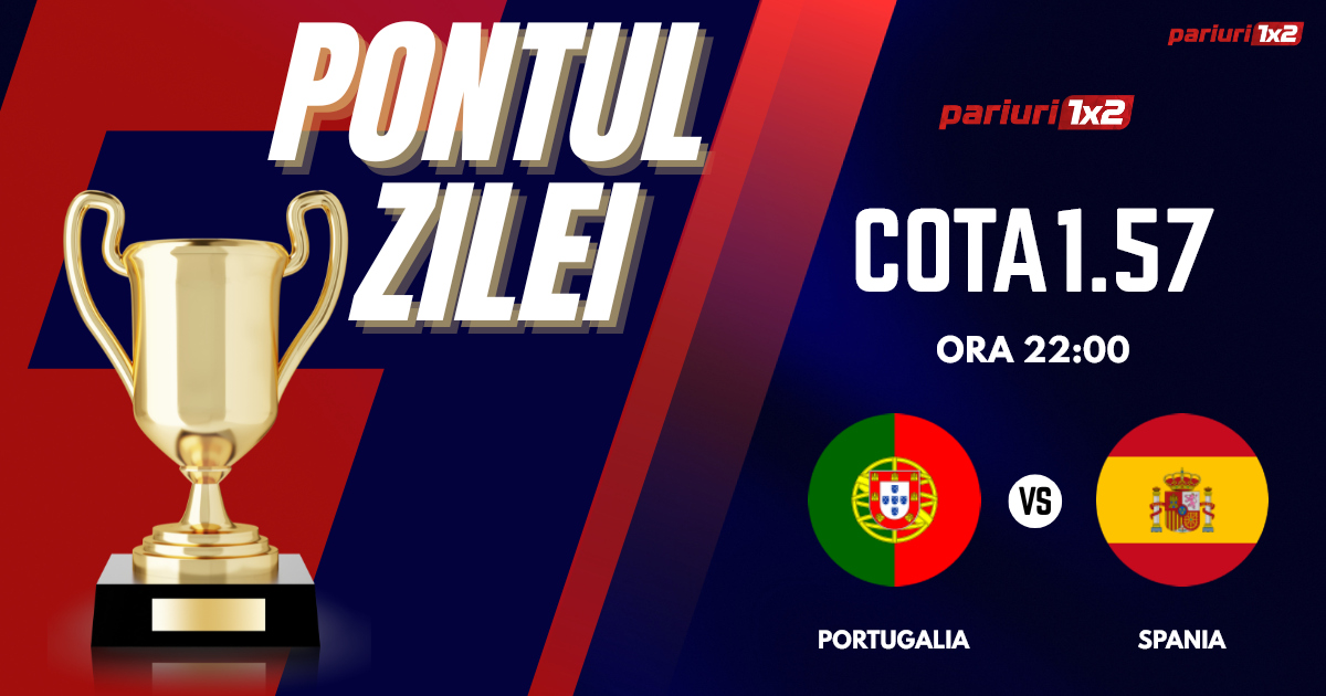 Pentru Pontul Zilei mergem la partida dintre Portugalia și Spania, meci contând pentru finala Ligii Națiunilor. Duelul dintre cele două formații va avea loc pe Allianz Arena din Munchen începând cu ora 22.00. Spaniolii vin după o victorie extrem de spectaculoasă, 5-4 cu Portugalia, iar ibericii au demonstrat că la ora actuală este o națională imposibil de învins. De partea cealaltă, portughezii i-au învins pe nemți, Cristiano Ronaldo ieșind din nou la rampă cu un gol marcat, în ciuda vârstei pe care o are. Ne așteptăm la un meci spectaculos, cu multe reușite, iar pronosticul nostru este x2 și peste 1.5 goluri.