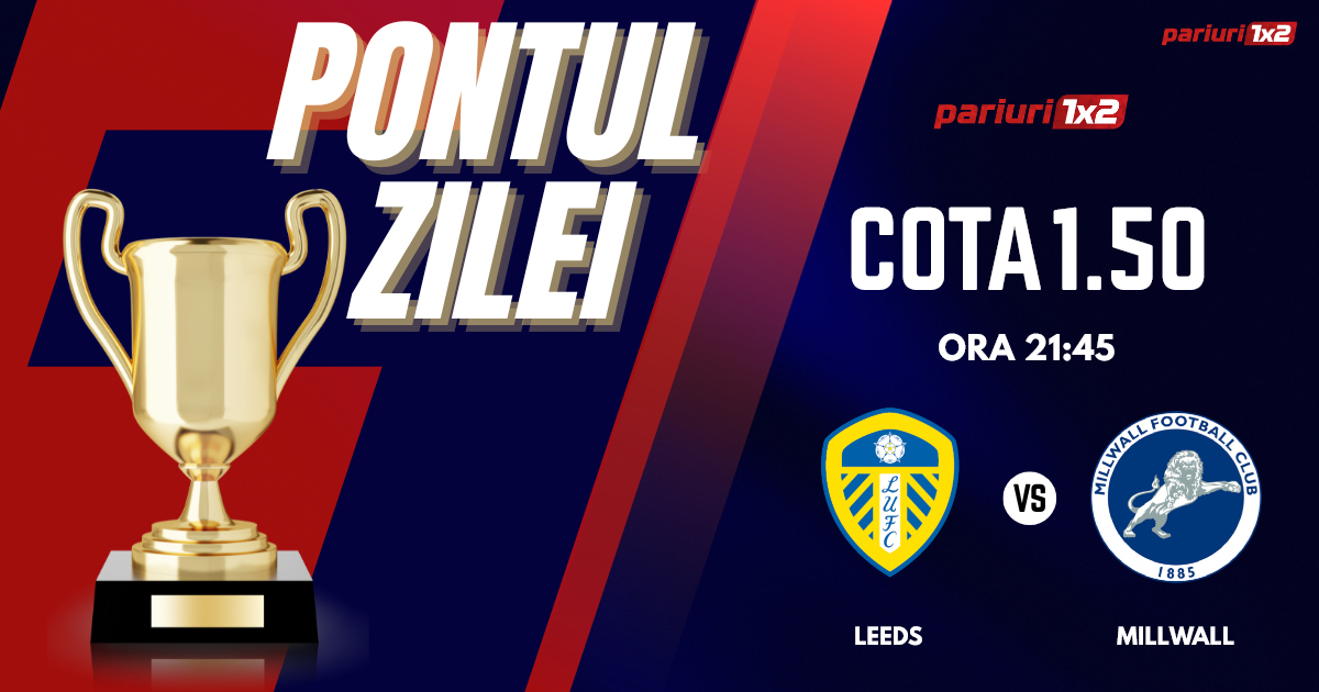 Pentru  Pontul Zilei mergem la partida dintre Leeds și Millwall, meci contând pentru etapa cu numărul 37 din Championship, al doilea eșalon al fotbalului din Anglia.  Duelul dintre cele două formații va avea loc pe Elland Road din Leeds începând cu ora 21.45. Gazdele au coborât pe locul doi după eșecul surprinzător de runda precedentă, 0-1 la Portsmouth. Cu toate acestea, Leeds rămâne principala favorită la câștigarea campionatului și implicit la revenirea în Premier League, acolo de unde a retrogradat în urmă cu doi ani. Cu cea mai bună ofensivă din Championship, 72 de goluri marcate, gruparea de pe Ellan Road întâlnește o formație de mijlocul clasamentului, iar cele trei puncte sunt extrem de importante în ecnomia campionatului. Pronosticul nostru pentru acest meci este Leeds marchează peste 1.5 goluri.