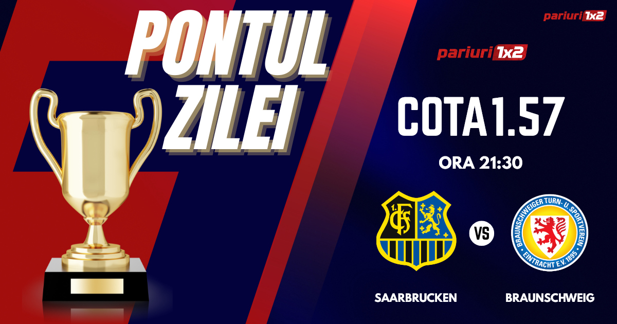 Pentru Pontul Zilei mergem la partida dintre Saarbruckeen și Braunschweig, meci contând pentru turul barajului de promovare/retrogradare în 2.Bundesliga. Duelul dintre cele două formații va avea loc pe Ludwigspark Stadion din Saarbrücken începând cu ora 21.30. Gazdele au avut un sezon foarte bun la capătul căruia au prins locul trei iar fanii speră la promovarea în eșalonul doi al fotbalului german. De partea cealaltă, oaspeții vin cu experiența unui sezon greu în Zweite și merg în Saarland pentru un rezultat pozitiv. Pronosticul nostru pentru această partidă este Braunschweig marchează 1-2 goluri.