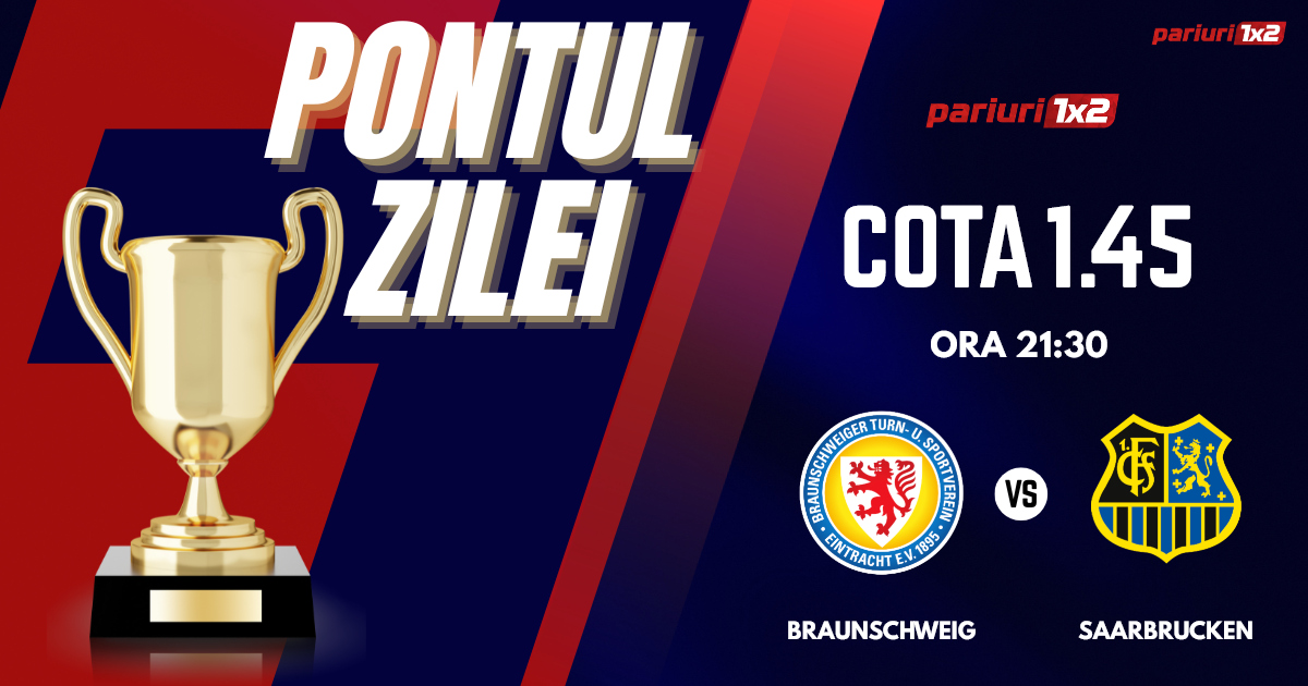 Pentru Pontul Zilei mergem la partida dintre Braunschweig și Saarbrucken, meci contând pentru returul barajului de promovare/menținere în Zweite Bundesliga. Duelul dintre cele două formații va avea loc pe Eintracht-Stadion din Braunschweig, începând cu ora 21.30. Gazdele au învins în tur, scor 2-0 pe terenul celor de la Saarbrucken și pleacă mari favorite în returul de pe propria arenă. Mai mult, gazdele au și experiența eșalonului secund de partea lor, iar per total este clar că Braunschweig este mai valoroasă, pentru oaspeți Zweite Bundesliga pare a fi o pălărie prea mare. Pronosticul nostru pentru acest meci este 1x și sub 4.5 goluri.